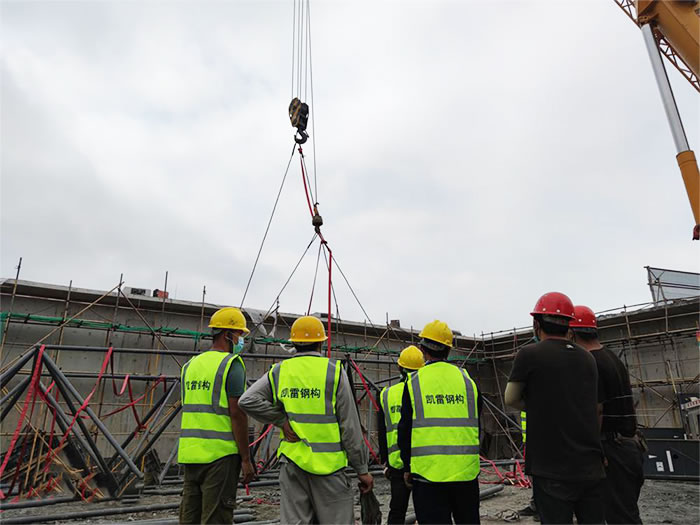 6.为确保.鞍山加油站球形鞍山网架安装顺利,应有详细的鞍山施工组织设计。网架安装必须保证结构的稳定性和不产生的附加变形。